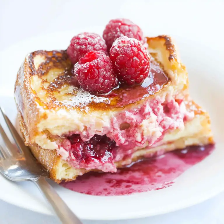 Indulge in the delightful experience of Brioche French Toast with Creamy Raspberry Cheesecake. This decadent breakfast treat combines the rich flavors of a creamy cheesecake filling with the sweet tang of raspberry preserves, all tucked inside fluffy brioche slices. Perfect for weekend brunches or special occasions, this dish is as impressive as it is delicious. The easy preparation and versatile serving options allow you to customize each plate, making it a favorite among family and friends. Whether drizzled with maple syrup, dusted with confectioners’ sugar, or garnished with fresh raspberries, this unique twist on traditional French toast is sure to become a cherished recipe in your home.