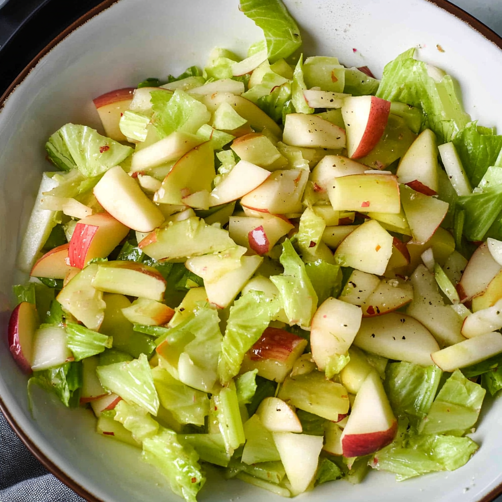 A Celery and Apple Salad is a refreshing mix of crunchy celery, sweet apples, and often includes cheese or nuts, dressed with a zesty vinaigrette.