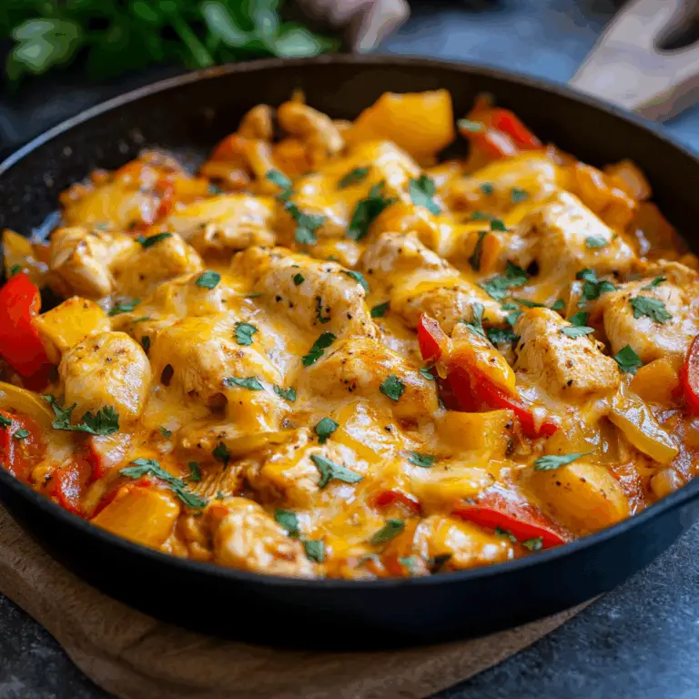 Indulge in the deliciousness of the Cheesy Baja Chicken & Bell Pepper Skillet, a vibrant one-pan meal that’s perfect for busy weeknights or casual gatherings. This dish combines tender chicken with colorful bell peppers and a melty layer of cheese, all seasoned with a blend of chili powder, cumin, and paprika to create a flavor explosion. Not only is it quick to prepare—taking just 35 minutes—but it also requires minimal cleanup, making it a favorite for families and anyone who loves easy cooking. Whether served with warm tortillas, over rice, or alongside fresh salads, this cheesy delight will surely impress your guests and satisfy your cravings.