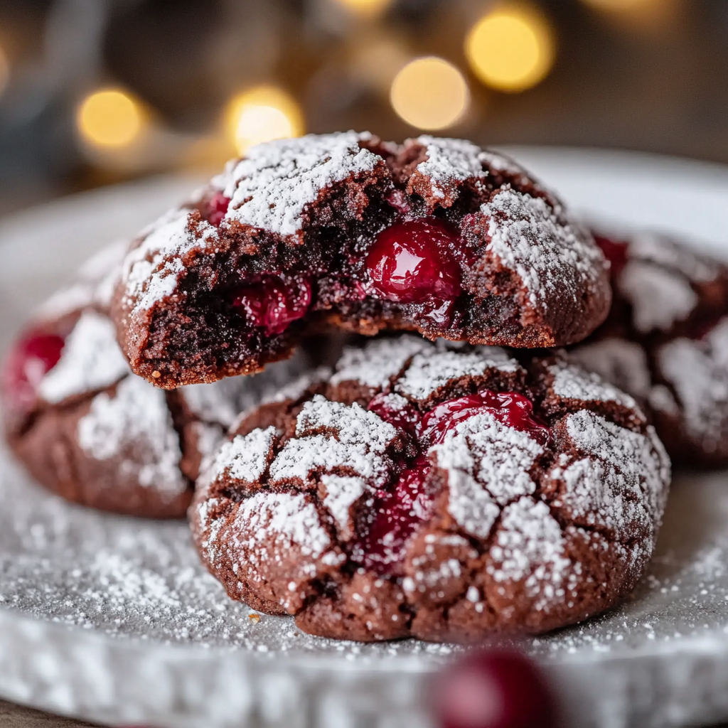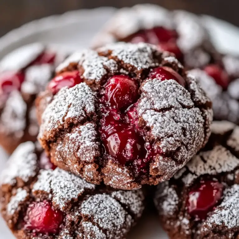 Chocolate Cherry Crinkle Cookies: The Festive, Fudgy Holiday Showstopper (Crackly Tops, Cherry Swirls & Ready in 30 Minutes!) are a delightful treat that perfectly captures the spirit of the season. These cookies combine the rich flavors of chocolate and cherries, creating an irresistible combination. With their crackly tops and chewy centers, they’re not just visually appealing but also a crowd-pleaser at any gathering. Whether for holiday celebrations or cozy family moments, these cookies are sure to impress.