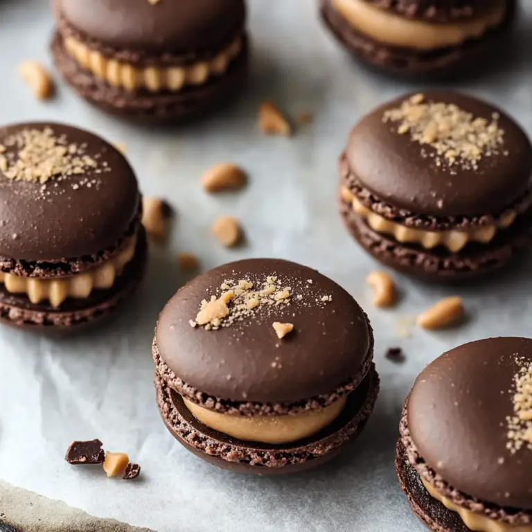 Indulge in the delightful experience of Chocolate Peanut Butter Macarons, an exquisite French treat that perfectly balances rich chocolate flavor with creamy peanut butter filling. These elegant desserts are ideal for any occasion—whether you’re hosting a festive gathering or simply treating yourself to something sweet at home. With their appealing texture and beautiful presentation, these macarons are sure to impress your guests and elevate your dessert game. Easy to make and customize, they invite creativity and can be tweaked to suit your taste preferences.