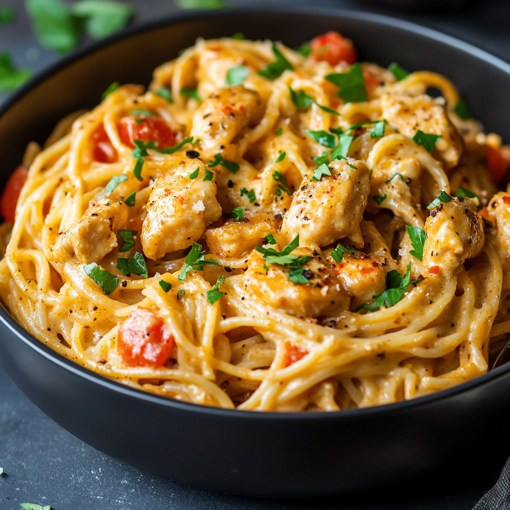 - Serve hot, garnishing with additional cheese or herbs if desired. Enjoy your Creamy Cajun Chicken Spaghetti!