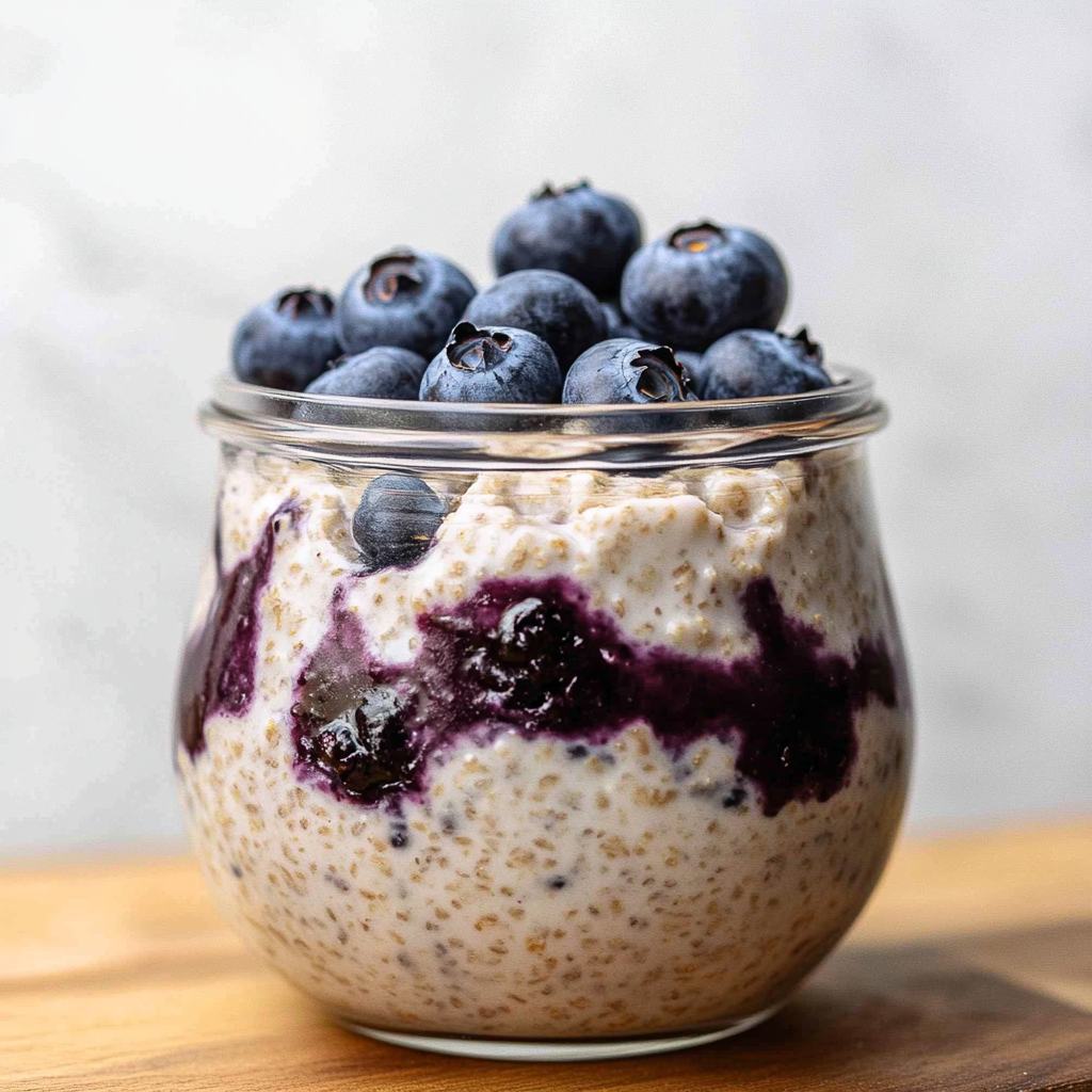 Blueberry Overnight Oats are a nutritious and convenient breakfast option made by soaking oats in liquid overnight. This method softens the oats, making them ready to eat without cooking. The recipe typically includes rolled oats, milk or plant-based alternatives, fresh blueberries, and optional sweeteners or toppings. This dish is rich in fiber and antioxidants, providing a healthy start to your day.