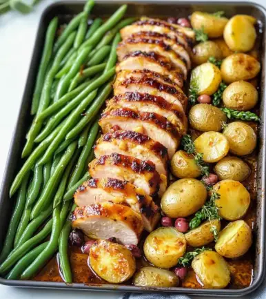 Keywords: Feel free to swap out green beans for asparagus or any seasonal vegetables you prefer. For added flavor, marinate chicken beforehand or baste it occasionally during baking.