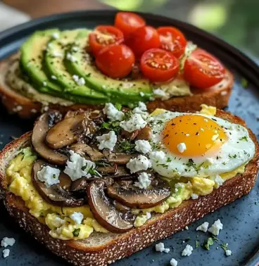Gourmet Breakfast Toast Duo is a delightful way to kickstart your day with bold flavors and nutritious ingredients. This vibrant breakfast plate features two delectable toasts: Sautéed Mushroom & Scrambled Egg Toast, offering a hearty, savory bite, and Avocado, Cherry Tomato & Feta Toast, which delivers a creamy, tangy contrast. Perfect for any occasion—be it a leisurely weekend or a quick weekday meal—this duo not only impresses with its taste but also with its ease of preparation. In just 20 minutes, you can whip up this gourmet breakfast that’s both visually appealing and satisfying.