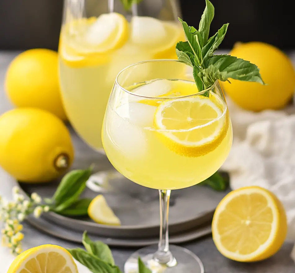 Garnish each glass with a lemon slice and an additional fresh basil sprig for that final touch of elegance.
