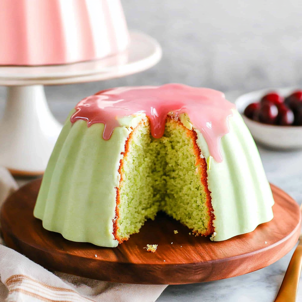Enjoy your delightful Pistachio Bundt Cake w/ Cherry Glaze – it’s sure to be a hit!