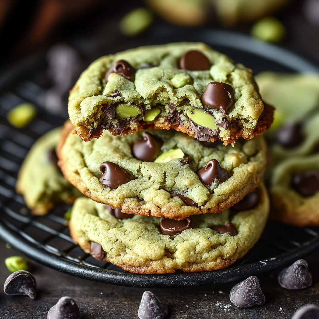 Keywords: pistachio cookies, chocolate chip cookies, pistachio cream, pistachio dessert, chewy cookies, chocolate cookies