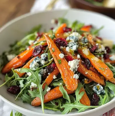 Indulge in the delightful flavors of our Roasted Carrot Salad, a vibrant dish that brings together sweet roasted carrots, tangy blue cheese, and tart dried cranberries on a bed of fresh arugula. This salad is not only visually stunning but also incredibly nutritious, making it the perfect addition to any meal. Whether you’re serving it as a side dish for grilled chicken or a light main course with quinoa, this recipe is quick to prepare and bursting with flavor.