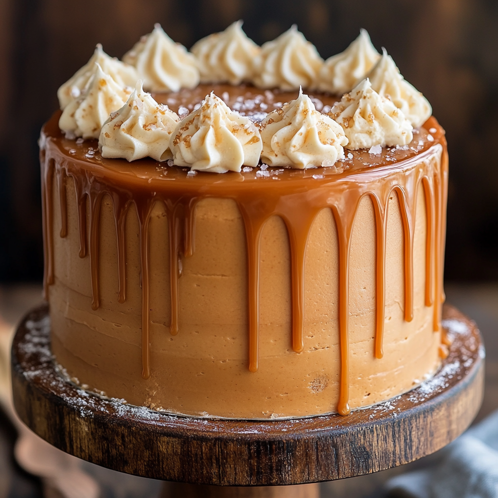 The Salted Caramel Cake is a delightful dessert that combines layers of moist vanilla cake with rich homemade salted caramel and creamy buttercream. This cake is perfect for celebrations, gatherings, or simply satisfying your sweet tooth. The unique blend of flavors and textures makes it a standout treat that will impress everyone at the table.