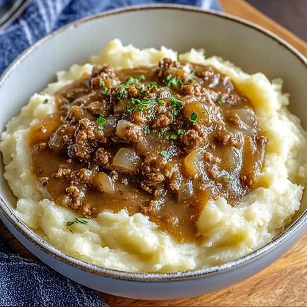 In conclusion, Ground Beef and Gravy Over Mashed Potatoes is a comforting dish that’s quick to prepare and satisfying for all ages. With simple ingredients like ground beef, onions, garlic, and creamy mashed potatoes topped with savory gravy, it’s perfect for family dinners or weeknight meals. Don’t hesitate to customize it by using different proteins or adding your favorite vegetables on the side. Enjoy this hearty meal that brings warmth to your dining table!