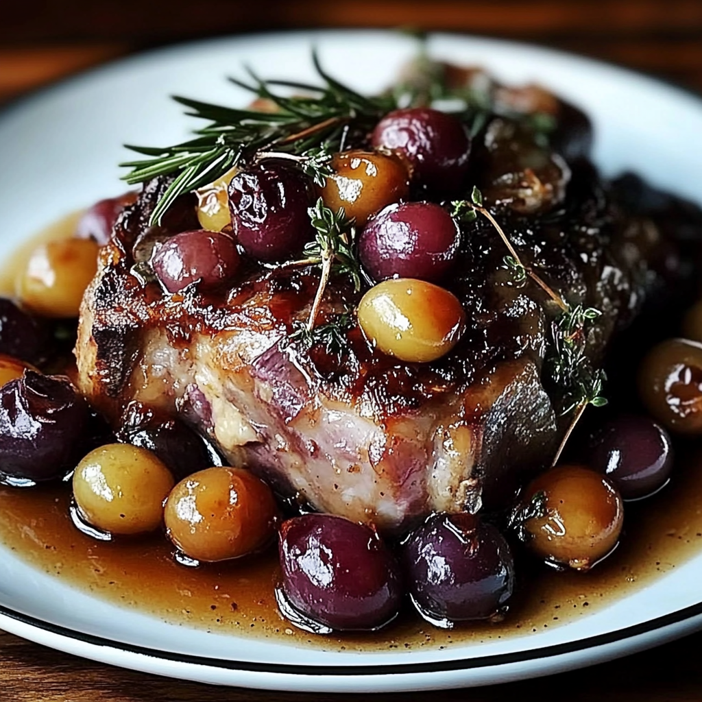 The Slow-Roasted Lamb Shoulder with Rosemary, Garlic Cream & Caramelized Grapes is a delightful dish that brings warmth and comfort to any gathering. This recipe combines tender lamb with aromatic herbs and sweet caramelized grapes, making it perfect for festive occasions or family dinners. The slow-roasting technique ensures that every bite is infused with flavor, while the creamy garlic sauce elevates the dish to new heights.