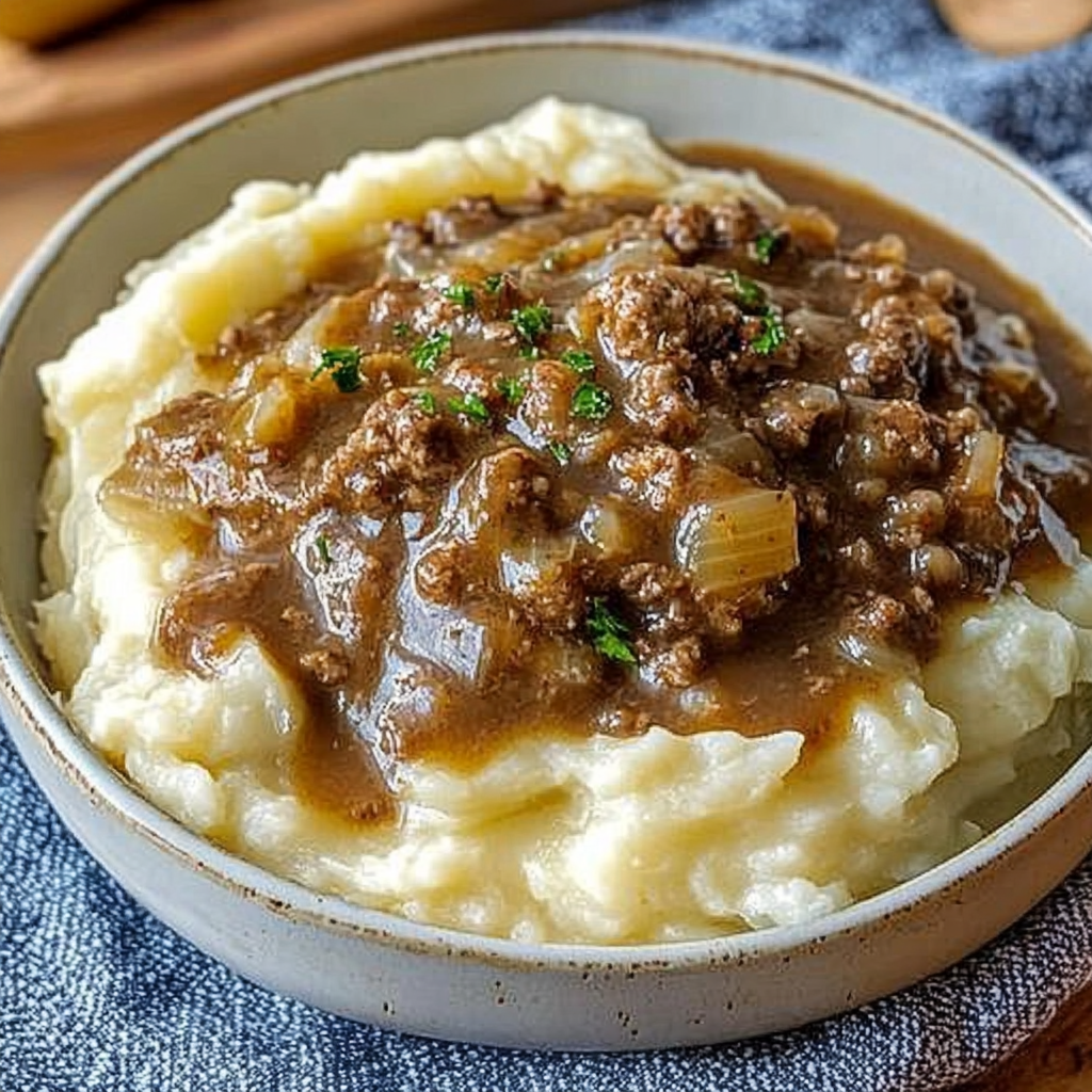 Savory Ground Beef and Gravy Over Mashed Potatoes Delight