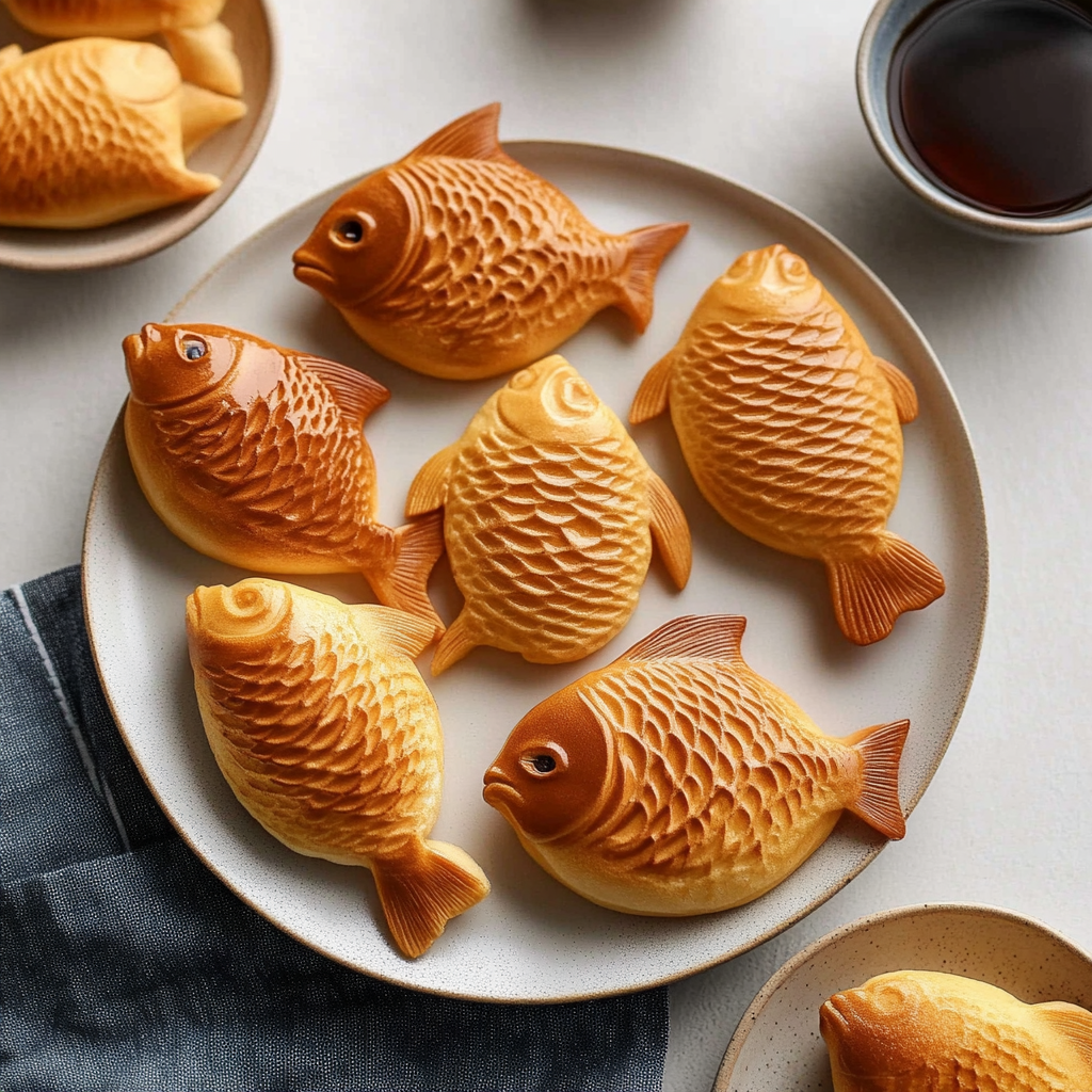 A delightful treat, Taiyaki (Japanese Fish Dessert) is a charming fish-shaped cake that fills your senses with warmth and sweetness. Perfect for any occasion, from casual snacks to festive gatherings, this Japanese fish pastry features a crispy exterior and a variety of delicious fillings. Its unique shape makes it not just a dessert but also a fun experience for everyone, especially kids!