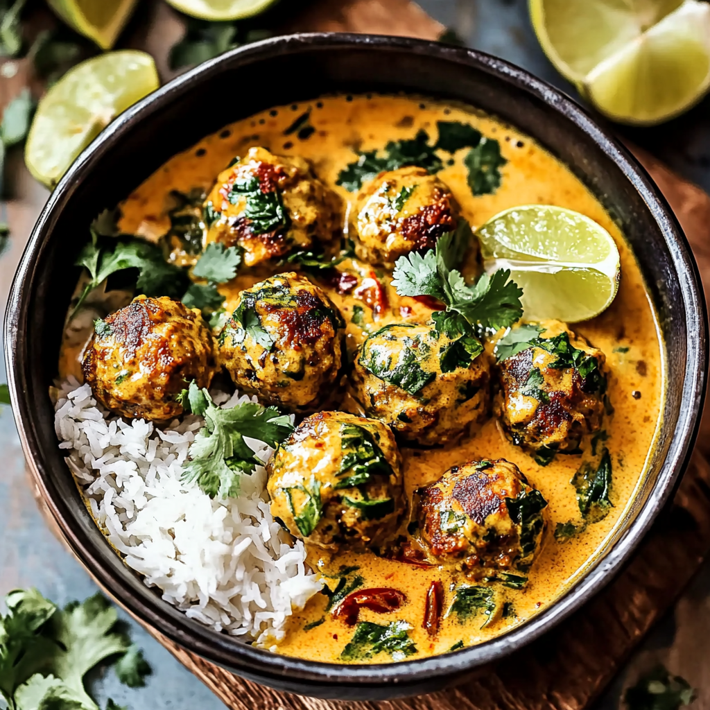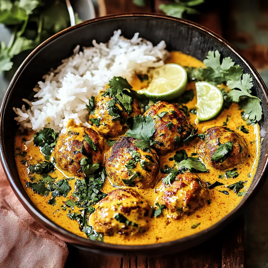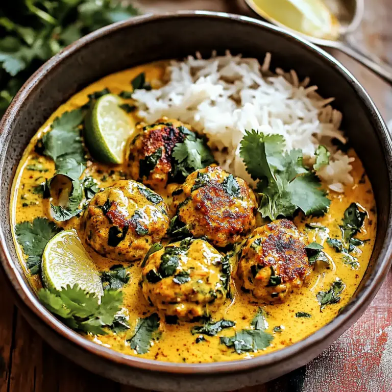 Indulge in the vibrant flavors of Thai Chicken Meatballs in Coconut Curry with Garlic Butter Sauce—a dish that transforms your dinner experience into something truly special. This recipe combines juicy meatballs made from ground chicken or beef, seasoned with aromatic spices, and bathed in a luscious coconut curry sauce. The garlic butter sauce adds an irresistible richness, making it perfect for cozy family meals or entertaining guests. With its quick preparation time and versatility to be served over rice or noodles, this dish is sure to become a favorite in your home.